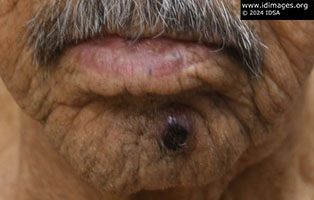 - Image 1: Ulcerated lesion of the chin, most advanced lesion at time of presentation